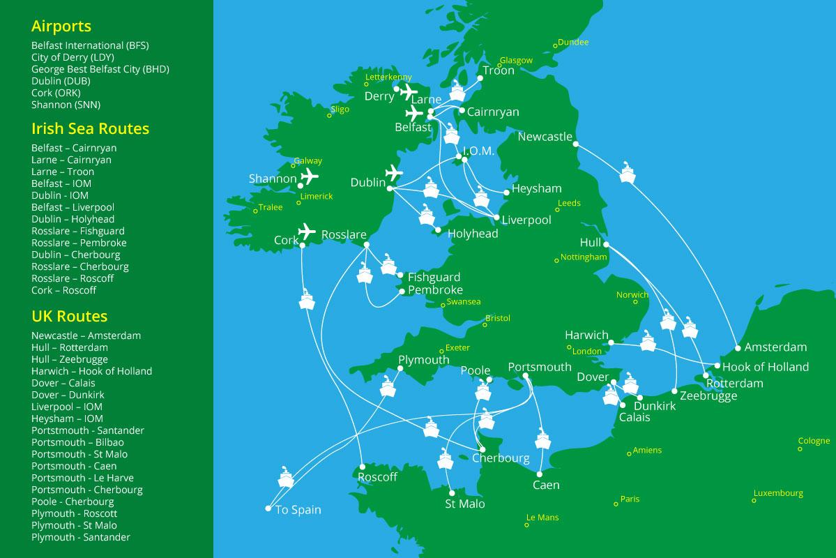 Mapa połączeń promowych z portów w Irlandii. Porty promowe do Irlandii mapie (Europa Północna Europa) do druku. Porty promowe do Irlandii mapie (Europa Północna Europa) do pobrania.